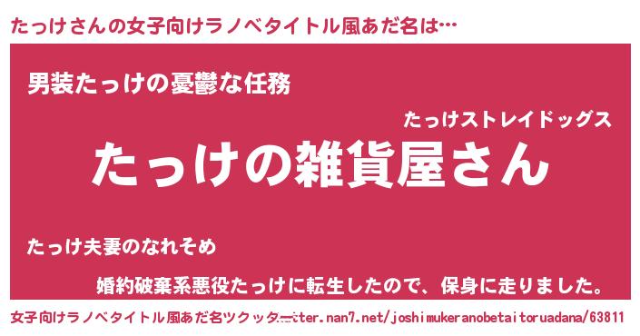 | 男性向けラノベタイトル風あだ名 | 『やはりたっけの青春ラブコメはまちがっている 』 |