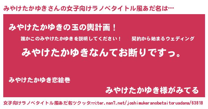 | 男性向けラノベタイトル風あだ名 | 『魔法科高校のみやけたかゆき』 |