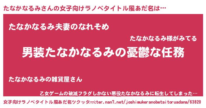 | 男性向けラノベタイトル風あだ名 | 『うちのたなかなるみが世界を掌握している!』 |