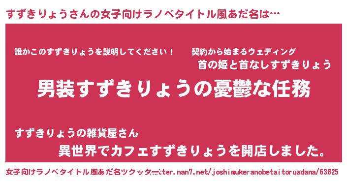 | 胡散臭い通販商品みたいなあだ名 | 『モテモテ間違いなしブレスレット…その名も「すずきりょう」』 |
