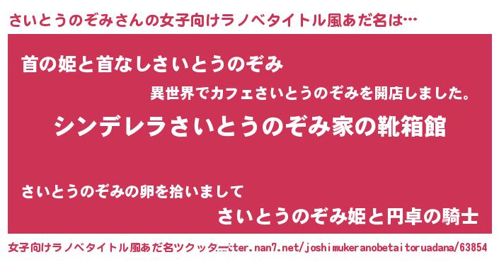 | 男性向けラノベタイトル風あだ名 | 『冴えないさいとうのぞみの育てかた』 |