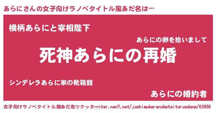 | 欧米人風あだ名 | 『ダニエルあらに』『アンジェラ・あらに』 |