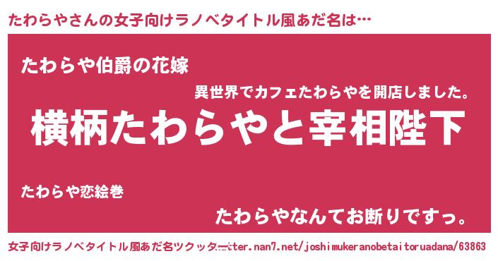 | ファンタジー風あだ名 | 『エターナルタワラヤー』『ゼタワトゥ』 |