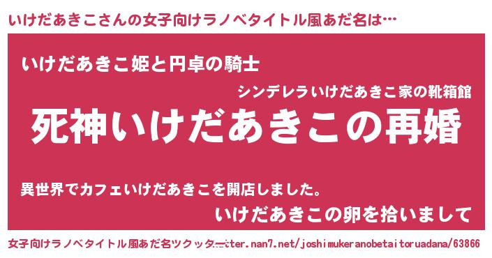 | 男性向けラノベタイトル風あだ名 | 『ノーゲーム・ノーイケダアキコ』 |