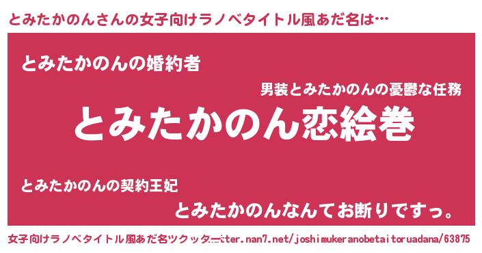 | 男性向けラノベタイトル風あだ名 | 『おまえをオタクにしてやるから、俺をとみたかのんにしてくれ! 』 |