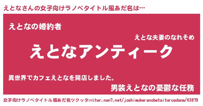 | 意味不明あだ名 | 『自称えとな』『えとなフォーエバー』 |