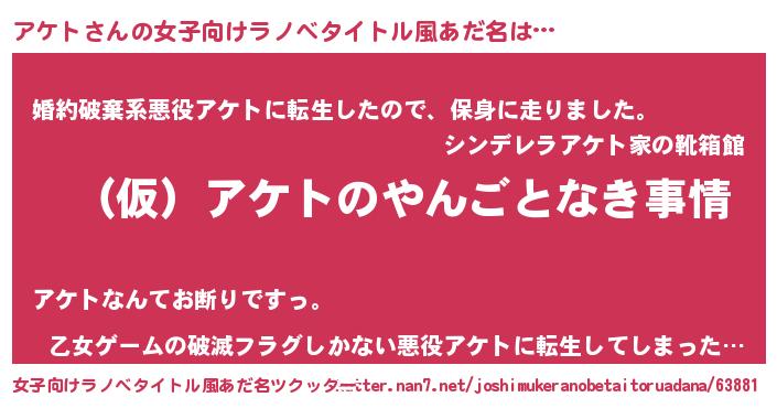 | 男性向けラノベタイトル風あだ名 | 『アケトの憂鬱』『魔弾の王とアケト』 |