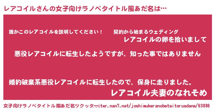 | 意味不明あだ名 | 『住所不定無職レアコイル(77歳)』 |
