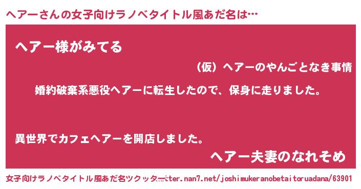 | 男性向けラノベタイトル風あだ名 | 『ヘアースレイヤー』『ヘアーの憂鬱』 |