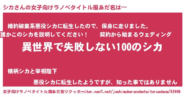 | 男性向けラノベタイトル風あだ名 | 『シカという概念が存在しない退屈な世界 』 |