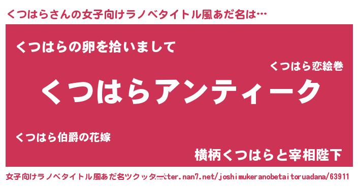 | 意味不明あだ名 | 『自称くつはら』『くつはらフォーエバー』 |