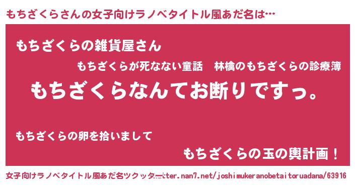 | 男性向けラノベタイトル風あだ名 | 『魔法科高校のもちざくら』 |