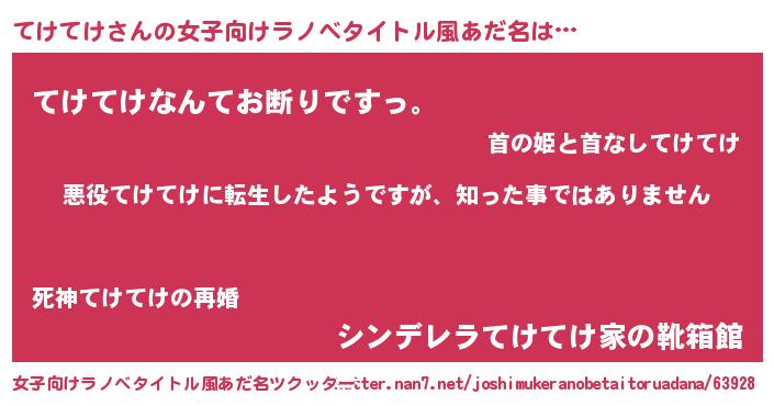 | 胡散臭い通販商品みたいなあだ名 | 『あなたにだけ特別に提供する100年もののヴィンテージワイン…その名も「てけてけ」』 |