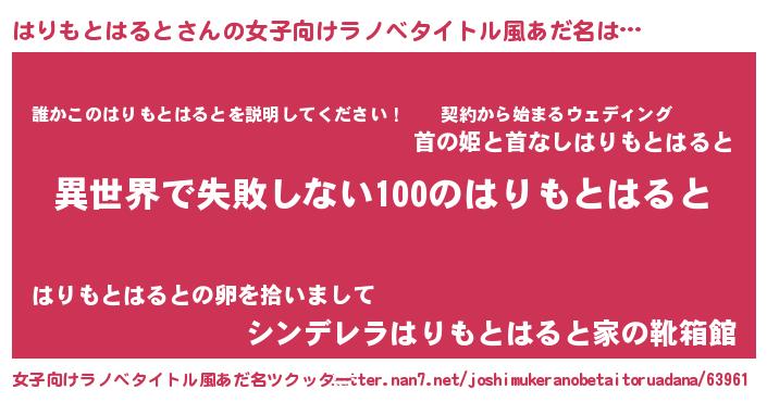 | 意味不明あだ名 | 『永久保存はりもとはると』 |