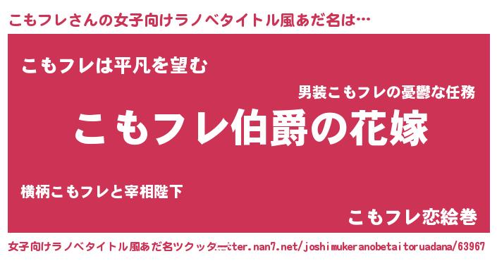 | ファンタジー風あだ名 | 『エターナルコモフレー』『クインコット』 |