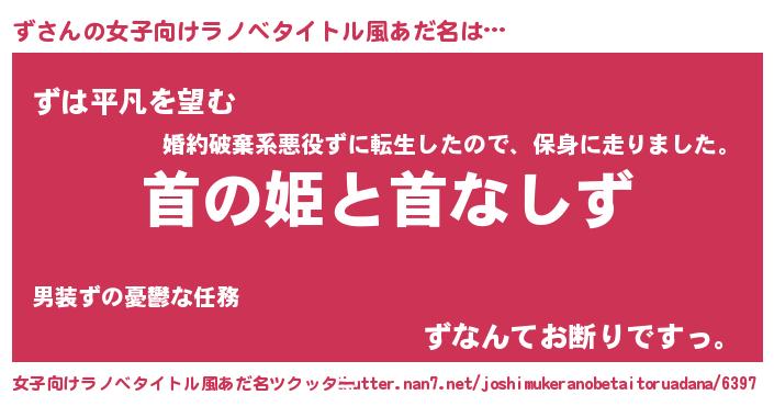 男性向けラノベタイトル風あだ名 | 『はたらくずさま!』『魔法科高校のず』 |