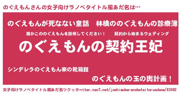 | 男性向けラノベタイトル風あだ名 | 『のぐえもんという概念が存在しない退屈な世界 』 |