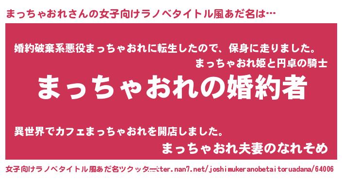 | 男性向けラノベタイトル風あだ名 | 『うちの娘の為ならば、俺はもしかしたらまっちゃおれも倒せるかもしれない。』 |