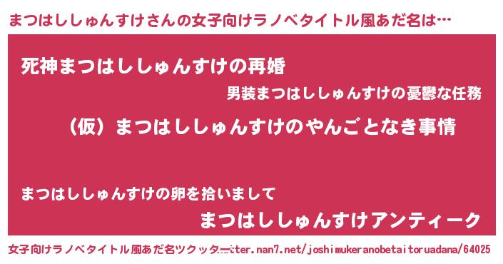 | 男性向けラノベタイトル風あだ名 | 『まつはししゅんすけの憂鬱』 |