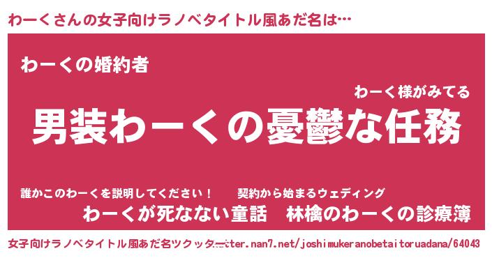 | 胡散臭い通販商品みたいなあだ名 | 『運命の人と巡り会える高級そうな壺…その名も「わーく」』 |