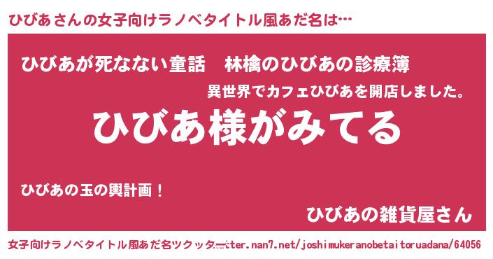 | 男性向けラノベタイトル風あだ名 | 『ひびあの嫁は女の子じゃないと思った?』 |