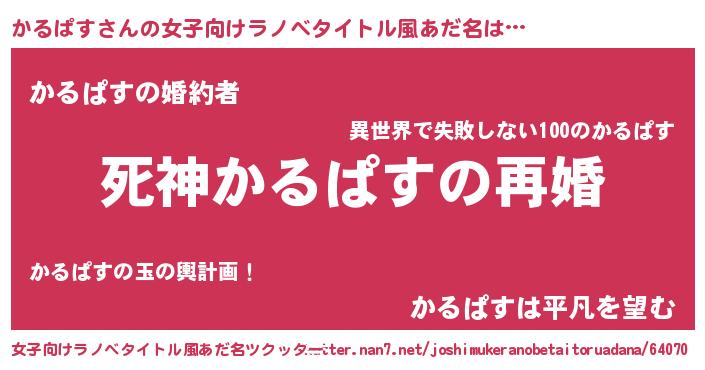 | 男性向けラノベタイトル風あだ名 | 『ノーゲーム・ノーカルパス』 |