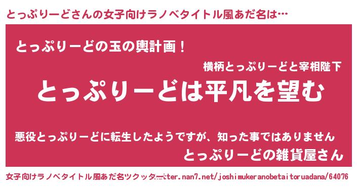 | 男性向けラノベタイトル風あだ名 | 『ダンジョンにとっぷりーどを求めるのは間違っているだろうか』 |