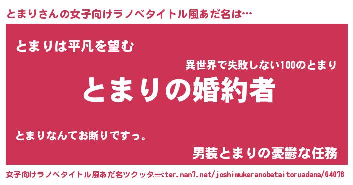 | 胡散臭い通販商品みたいなあだ名 | 『運命の人と巡り会える高級そうな壺…その名も「とまり」』 |