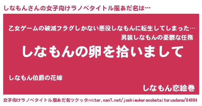| 男性向けラノベタイトル風あだ名 | 『ダンジョンにしなもんを求めるのは間違っているだろうか』 |