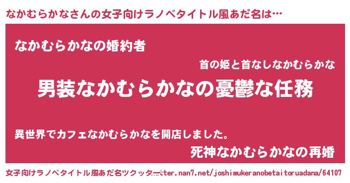 | 男性向けラノベタイトル風あだ名 | 『冴えないなかむらかなの育てかた』 |