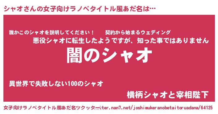 | 男性向けラノベタイトル風あだ名 | 『Re:シャオから始める異世界生活』 |