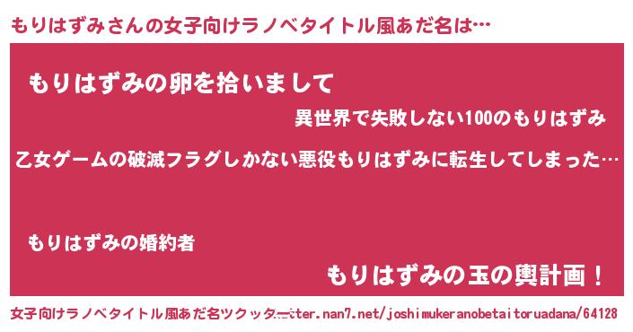 | 胡散臭い通販商品みたいなあだ名 | 『世界中を虜にした100年もののヴィンテージワイン…その名も「もりはずみ」』 |