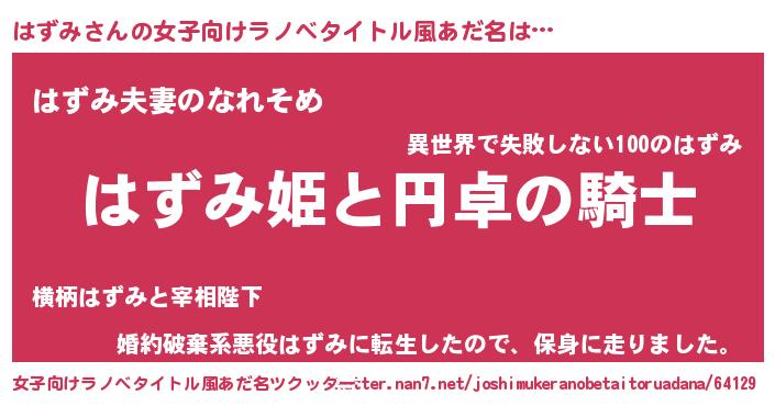 | 男性向けラノベタイトル風あだ名 | 『ハズミアートオンライン』 |