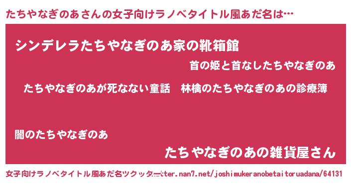 | 意味不明あだ名 | 『住所不定無職たちやなぎのあ(41歳)』 |