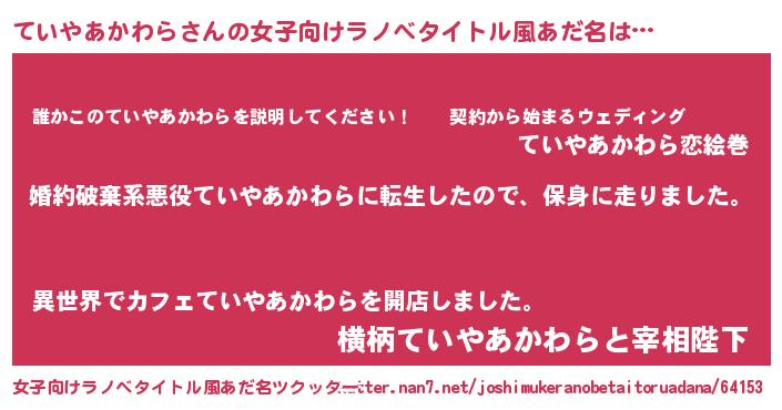 | 胡散臭い通販商品みたいなあだ名 | 『必ず成功するブレスレット…その名も「ていやあかわら」』 |