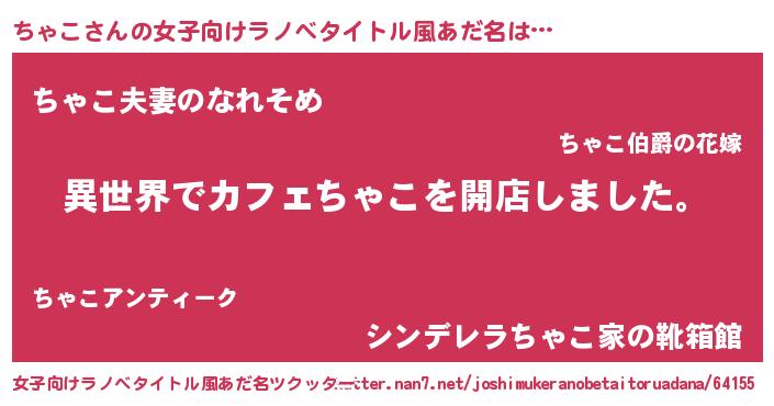 | 男性向けラノベタイトル風あだ名 | 『誰もが恐れるあのちゃこが、ぼくの専属メイドになるようです。』 |