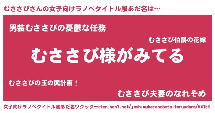 | ヒーロー風カッコイイあだ名 | 『幻影騎士ムサ』『慈愛の使者むささび』 |