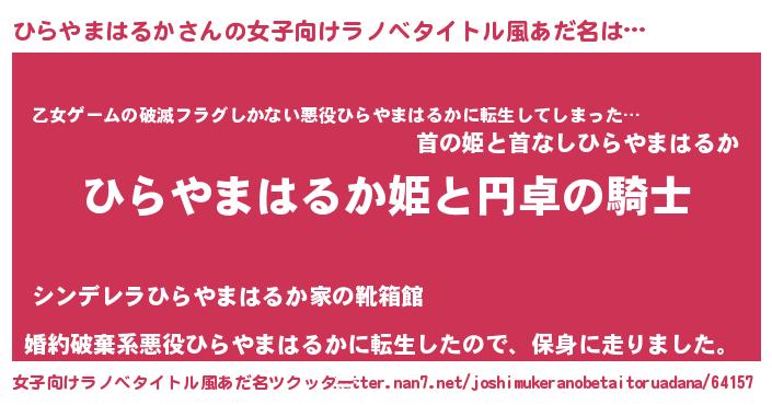 | 胡散臭い通販商品みたいなあだ名 | 『モテモテ間違いなし霊験あらたかなお札…その名も「ひらやまはるか」』 |