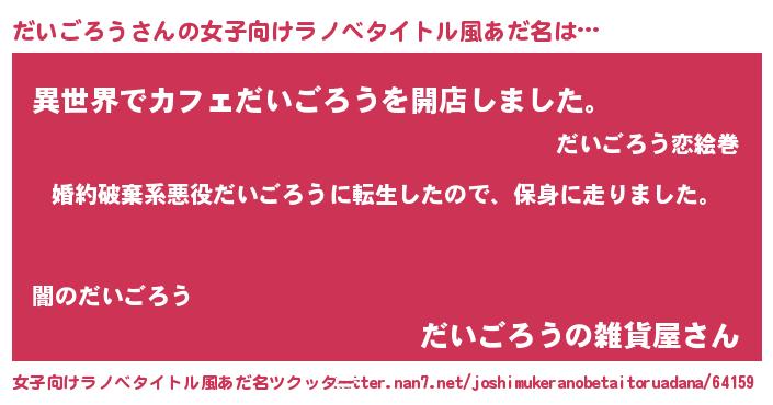 | 男性向けラノベタイトル風あだ名 | 『ダイゴロウスレイヤー』 |