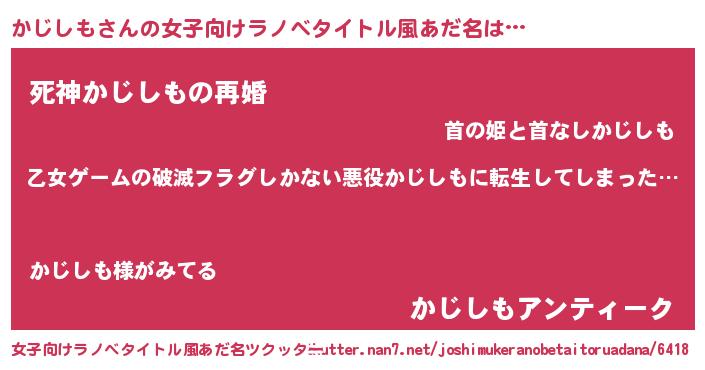 | 男性向けラノベタイトル風あだ名 | 『この素晴らしい世界にかじしもを!』 |
