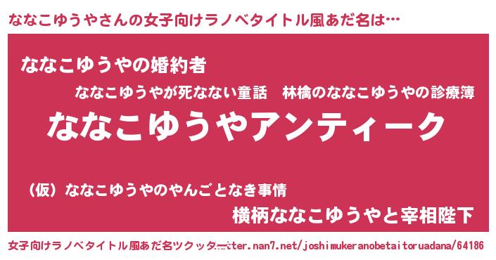 | 意味不明あだ名 | 『自称ななこゆうや』 |