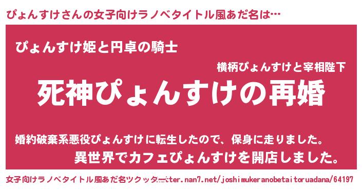 | 男性向けラノベタイトル風あだ名 | 『ノーゲーム・ノーピョンスケ』 |