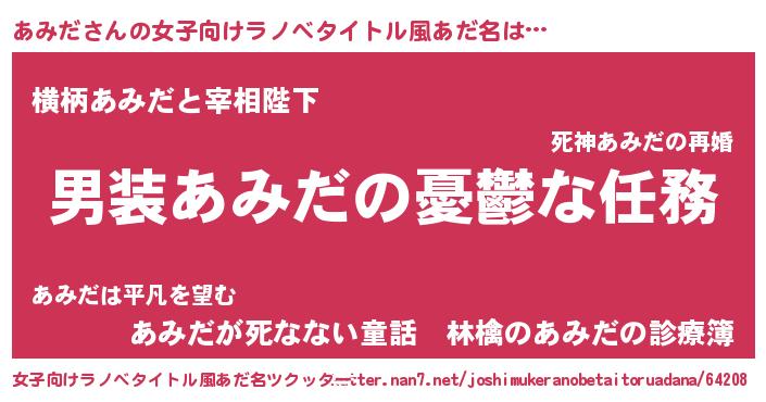 | 意味不明あだ名 | 『住所不定無職あみだ(10歳)』『自称あみだ』 |