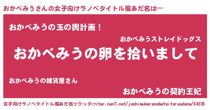 | 料理風あだ名 | 『ポテトとおかべみうのキッシュ☆』 |