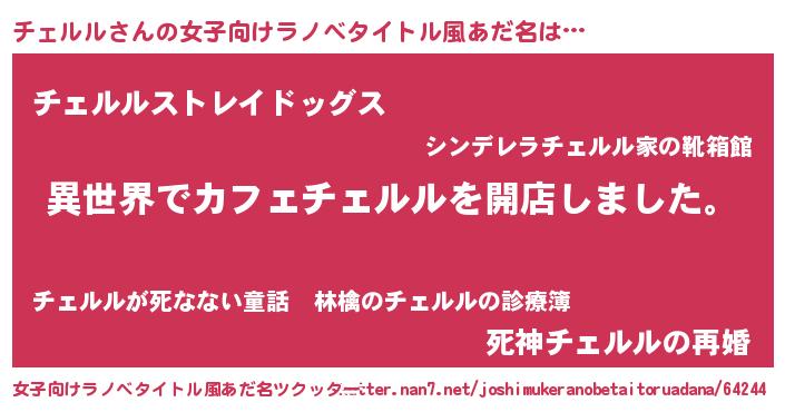 | ヘコむあだ名 | 『チェルル(小並感)』『チェ太郎』 |
