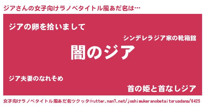 | 男性向けラノベタイトル風あだ名 | 『Re:ジアから始める異世界生活』 |