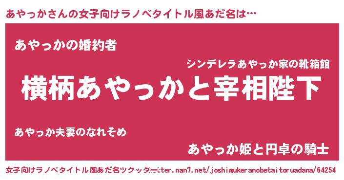 | 男性向けラノベタイトル風あだ名 | 『あやっかに滅ぼされるだけの簡単なお仕事です』 |