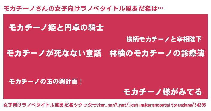 | 男性向けラノベタイトル風あだ名 | 『魔弾の王とモカチーノ』 |