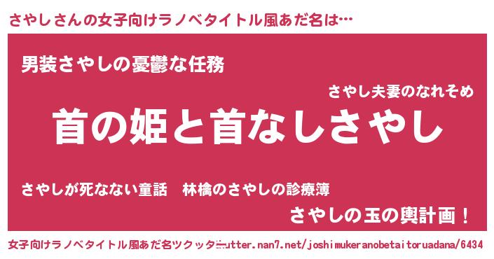 | 意味不明あだ名 | 『めかぶ科さやし属』『自称さやし』 |
