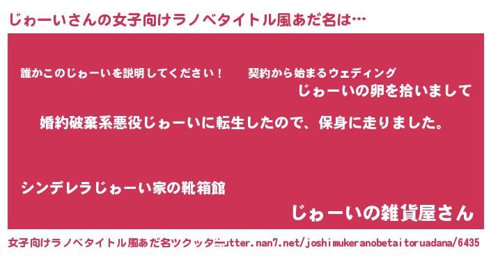 | 胡散臭い通販商品みたいなあだ名 | 『必ず成功する水晶球…その名も「じゎーい」』 |